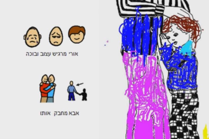Ури (אורי), грустный (עצוב), и плачет (בוכה).